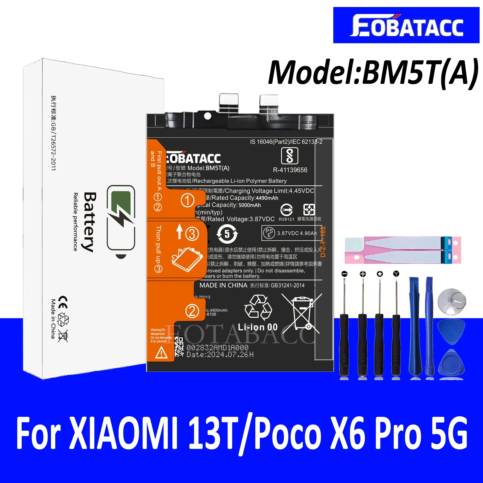 EOTABACC 100% New Original Battery BM5T(A) For XIAOMI 13T/Poco X6 Pro 5G Battery +Tools – 509