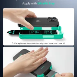 Flawless Fit in a Flash: includes an UltraFit tray for the screen protector (read carefully before use), a cleaning kit, and a dust-repellent adhesive for quick, bubble-free application