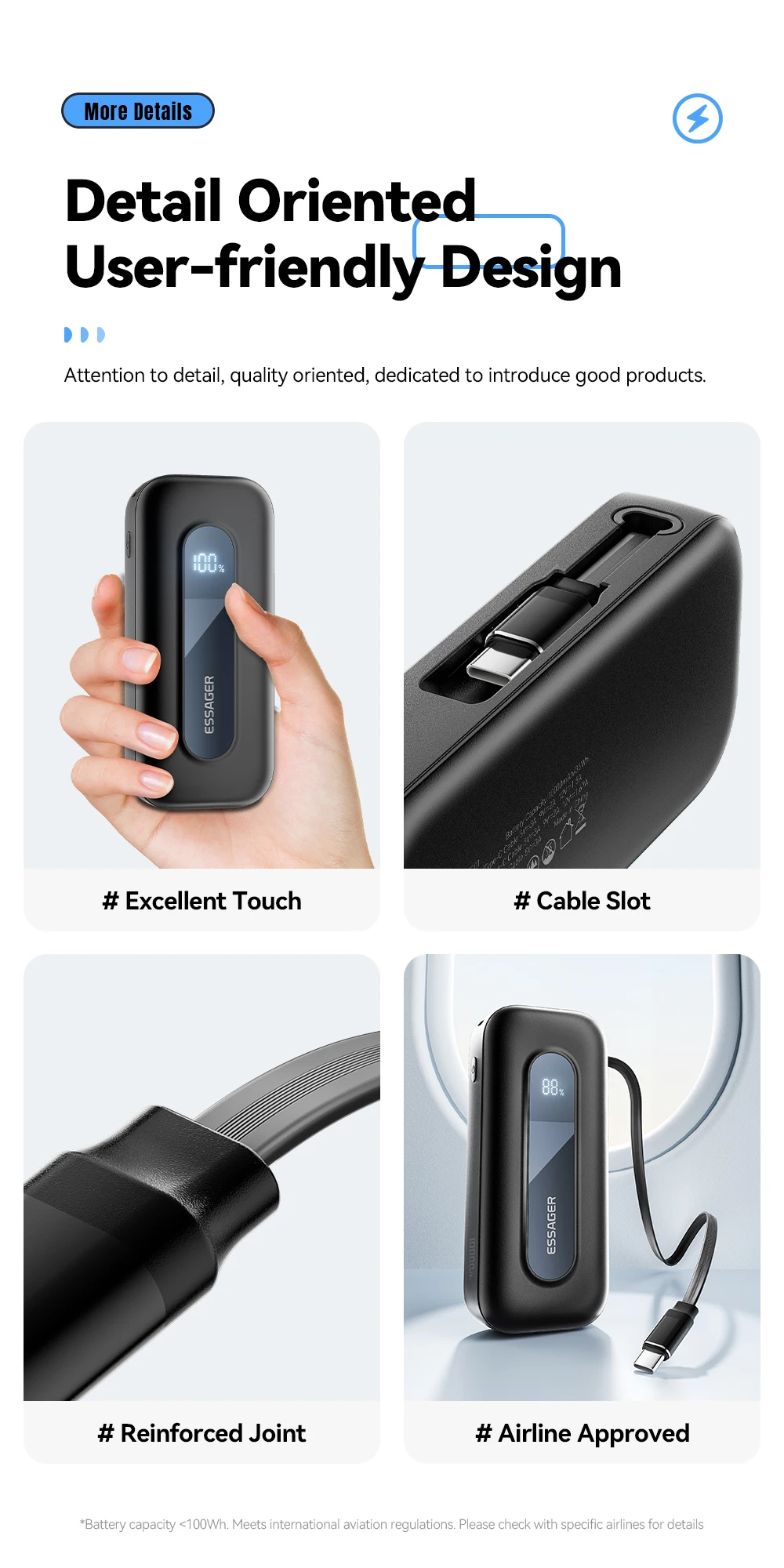 Buy Essager 20W Power Bank 10000mAh with Built-in Retractable Type-C Cable PD Fast Charging for iPhone 16 15Pro iPad Digital Display at for . Find more 509, 200002222 and products. Enjoy ✓Free Shipping Worldwide! ✓Limited Time Sale ✓Easy Return.