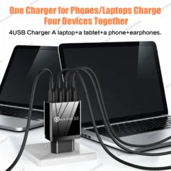 2. 4 USB ports ( quick charge 3.0 and 3 usb port 5V/3.1 A Max ), charging 4 devices at the same time.