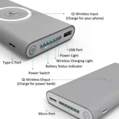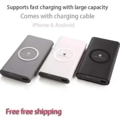 Item DescriptionSupport Fast Wireless Charging at Up to 5V 1A Fast Charger USB Port Power Bank Wireless charging USB charge Micro usb input Type-C input Charge the Power Bank You to Charge Your Phone While Charging Your Deviceand Can Use the Wireless Charger for the Wireless Power Bank to Charge Product parameters: 1. Input voltage: 5V, 2A 2. Output voltage with the cable connected: 5V, 2.1A 3. Wireless charging current: 500 to 1000 mA 4. Wireless operating frequency: 110 – 205KHZ 5. Radiation distance: about 2 to 4 mm/ 0.07 – 0.16in 6. Charging power: 5 mW 7. Standby power: less than 30 mW Packing: 1 x Wireless Charger Power Bank 1 x Micro USB Cable