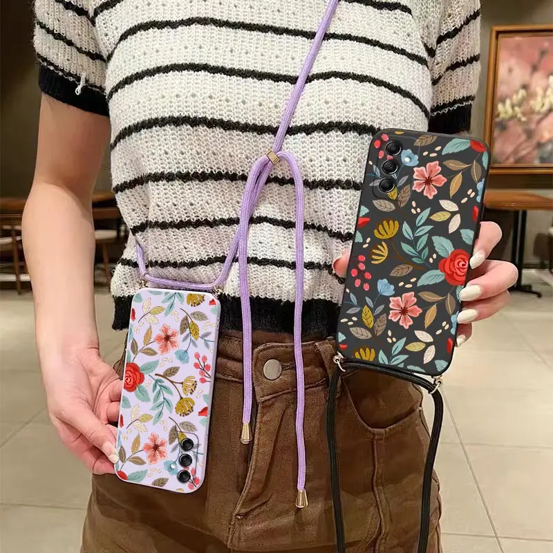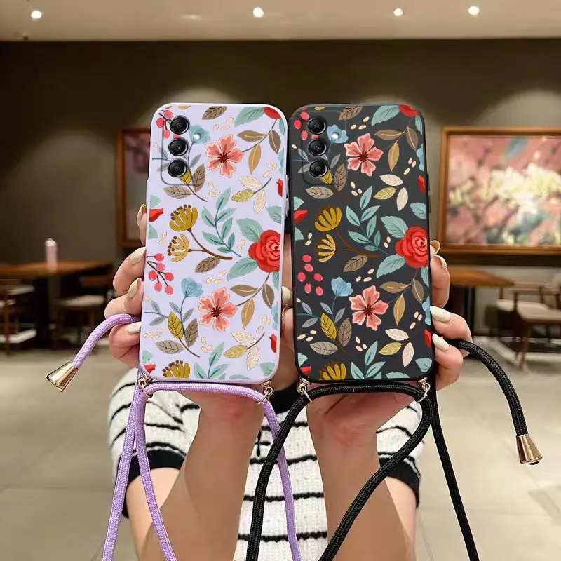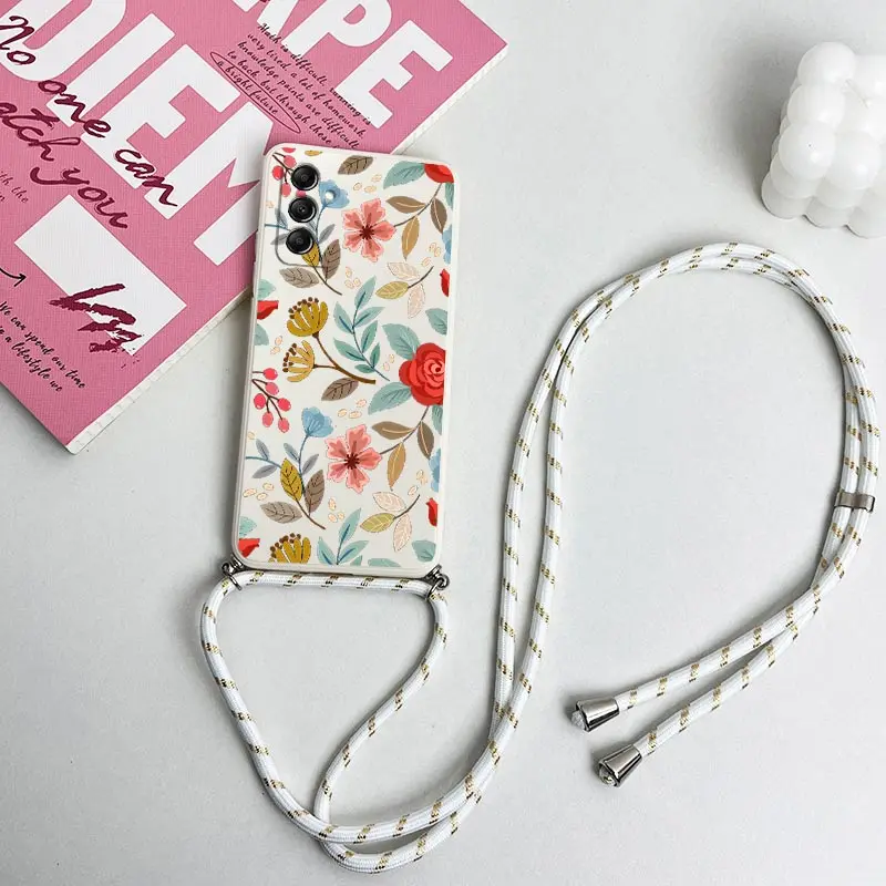 Five Petals Flower Crossbody Lanyard Silicone Phone Case For Samsung Galaxy A14 A13 A12 A10 A04E A20S A21S A22 A32 A34 A50 Cover