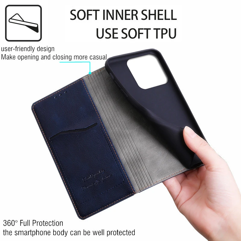 [Product Name]: Wallet Leather Flip Book Case. [Material]: High quality PU Leather material. [Color]:Dark Blue, Red, Brown, Black, Gray, Green, Purple, Sky Blue, Orange, Light Green, Light Purple, Wine Red, Light Blue. [Advantage]:Leather Wallet+Magnetic Flip+Stand Support+Card Slots +Hand Rope. [Design]: Fashion Design,Easy to put on and easy to take off. [Function]:Great protection of your phone from dirt, scratches, and damag. [Package]: 1pc x Phone case. [Notice]: The camera hole position will change according to the model. [Reminder]: If you don’t understand the purchase, please contact customer service.(For other models, you can also contact us.)