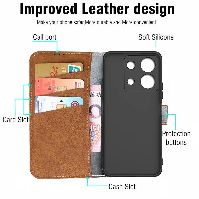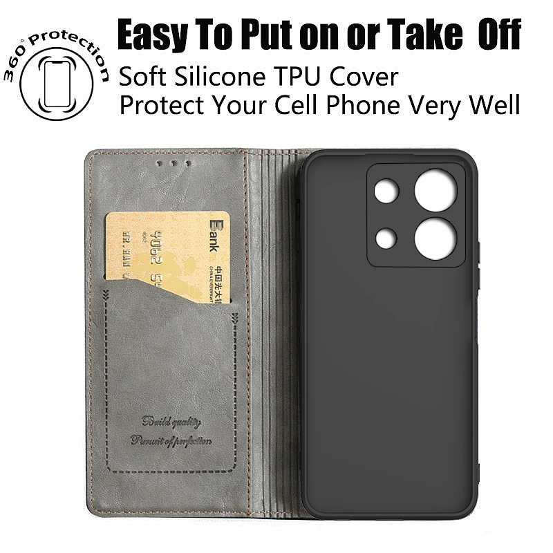 Flip Housing Case For Xiaomi Redmi Note 13 Pro Phone Case Etui Redmi Note 13 global 4G 5G Redmi Note 13 Pro Plus Cover Note13 premium Fundas accessories Coque bags Pouch Capa have card slots with holder Leather & Silicone bumper original Shockproof magnet Phone Covers