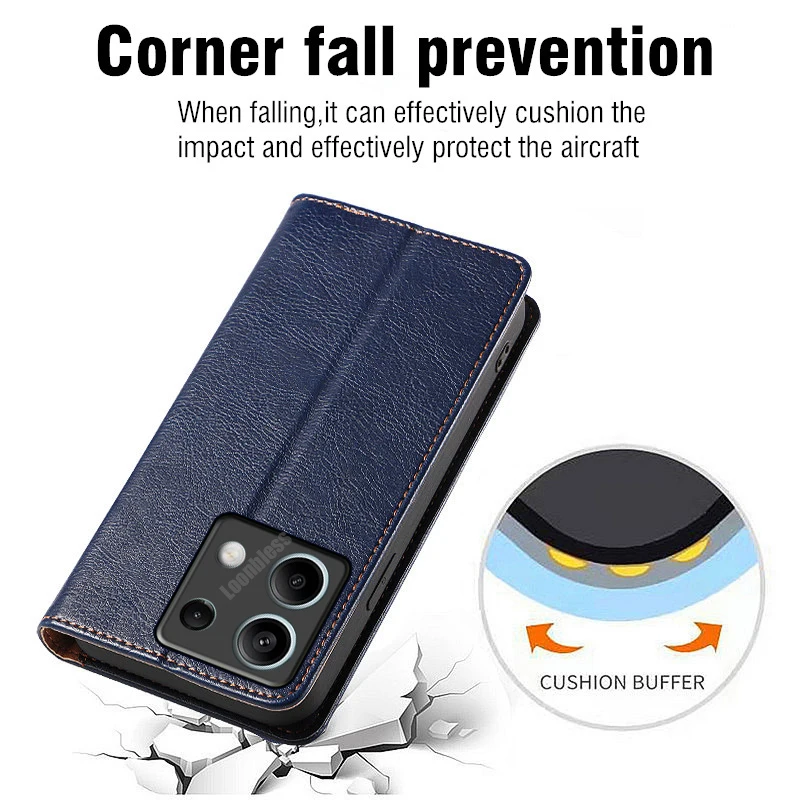 Specifications: Material: High-quality PU Leather Color Variety: Available in Dark Blue, Red, Brown, Black, Gray, Green, Purple, Sky Blue, Orange, Light Green, Light Purple, Wine Red, Light Blue Design: Fashionable Flip Book Case with Magnetic Closure Functionality: Shockproof, Dirt-Resistant, and Scratch-Proof Inclusions: Card Slots with Holder and Hand Rope Compatibility: Specifically designed for Xiaomi Redmi Note 13 Pro, Redmi Note 13 Pro 5G, Redmi Note 13 Pro 4G Features: |Redmi Note 13 Case| **Premium Protection and Convenience** The Flip Housing Case for Xiaomi Redmi Note 13 Pro is not just a protective cover; it's a multifunctional accessory that enhances your mobile experience. Crafted from high-quality PU leather, this case offers a premium feel and durability, ensuring your device remains safe from daily wear and tear. The magnetic flip design allows for quick and easy access to your phone, while the built-in card slots and hand rope provide added convenience and security. **Designed for the Modern User** This wallet leather flip book case is more than just a protective cover; it's a fashion statement. Available in a variety of colors, it allows you to express your personal style while keeping your phone safe. The magnetic closure ensures your phone stays securely in place, while the stand support function makes it easy to watch videos or use your phone hands-free. Whether you're at work or on the go, this case is designed to keep up with your active lifestyle. **Tailored for the Redmi Note 13 Series** The Flip Housing Case is specifically tailored to fit the Xiaomi Redmi Note 13 Pro, Redmi Note 13 Pro 5G, and Redmi Note 13 Pro 4G models. The camera hole position is adjusted to match the specific model, ensuring that your phone's camera is always accessible. The case's slim profile and lightweight design ensure that your phone remains easy to handle, while the shockproof and scratch-resistant properties keep it in pristine condition. With this case, you can enjoy the peace of mind that comes with knowing your phone is protected without sacrificing style or functionality.