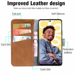 [Product Name]: Wallet Leather Flip Book Case. [Material]: High quality PU Leather material. [Color]:Dark Blue, Red, Brown, Black, Gray, Green, Purple, Sky Blue, Orange, Light Green, Light Purple, Wine Red, Light Blue. [Advantage]:Leather Wallet+Magnetic Flip+Stand Support+Card Slots +Hand Rope. [Design]: Fashion Design,Easy to put on and easy to take off. [Function]:Great protection of your phone from dirt, scratches, and damag. [Package]: 1pc x Phone case. [Notice]: The camera hole position will change according to the model. [Reminder]: If you don’t understand the purchase, please contact customer service. (For other models, you can also contact us.)