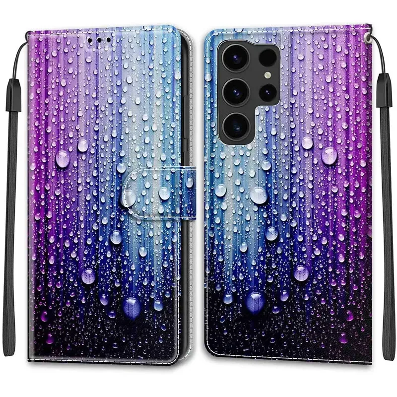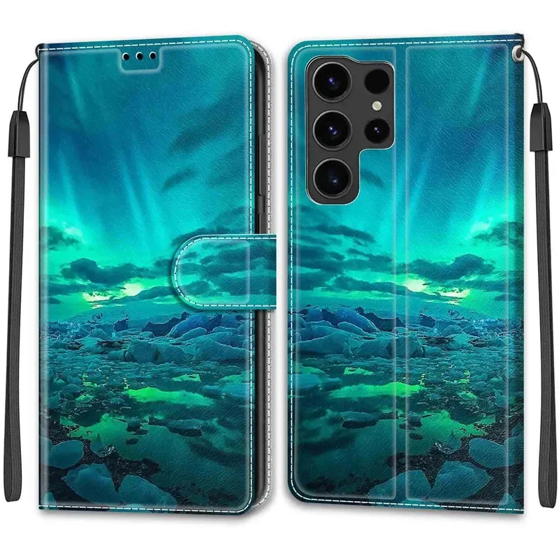 Flower Pattern Flip Case For Samsung Galaxy S24+ S23 FE S24 Ultra Plus S24Plus 5G Wallet Leather Phone Cases Stand Book Cover