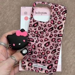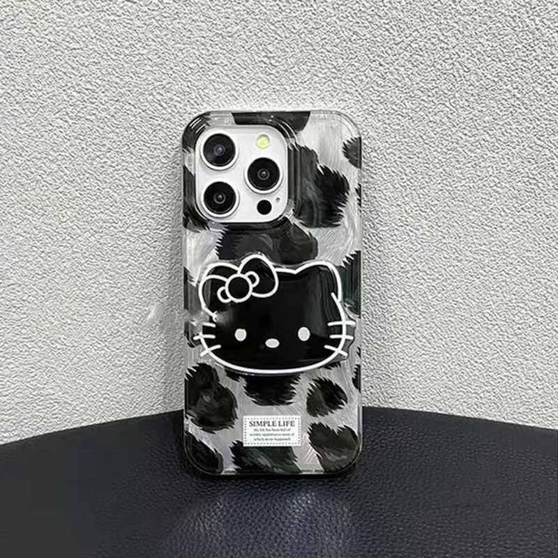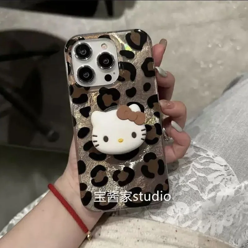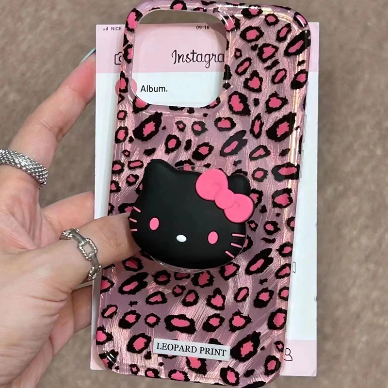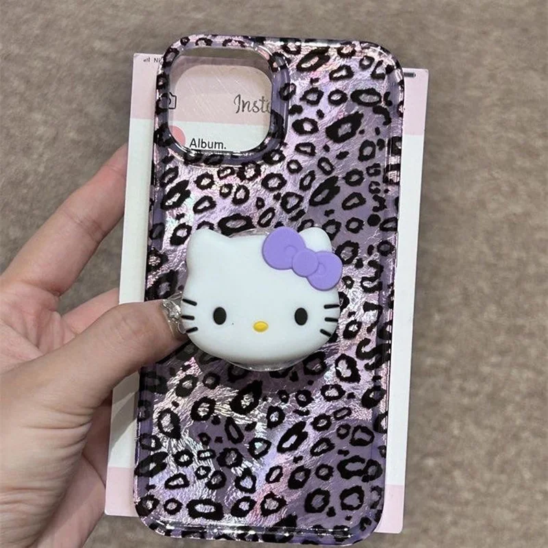 For iPhone 15 Pro 16 14 Plus 12 Pro Max 13 Mini 11 X XS 7 Laser Lining Color Leopard Hello Kitty Grip Tok Holder Hard Phone Case –