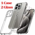 For iPhone 16 15 Pro Max Phone Case & Screen Glass For iPhone 16 15 14 13 Mini 12 11 Pro Transparent Case iPhone16 Plus Cover