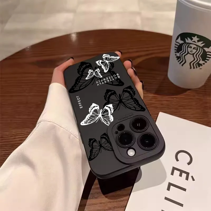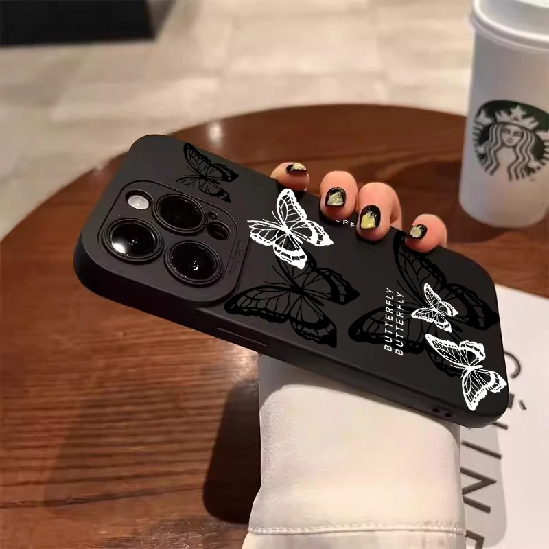 For iPhone 16 Case Black White Butterfly Pattern Phone Cover For iPhone 15 14 Pro Max 13 12 11 XS X XR 7 8 16 Plus SE 2022 Cases –