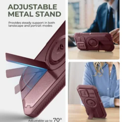 Adjustable metal kickstand: Made from superior aluminum alloy, the adjustable stand is incredibly sturdy and long-lasting. It holds your phone securely in both landscape and portrait modes, ensuring great stability and convenience for hands-free viewing.