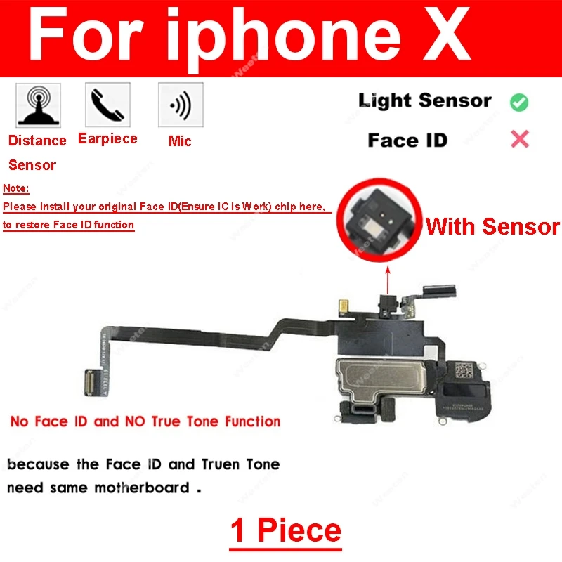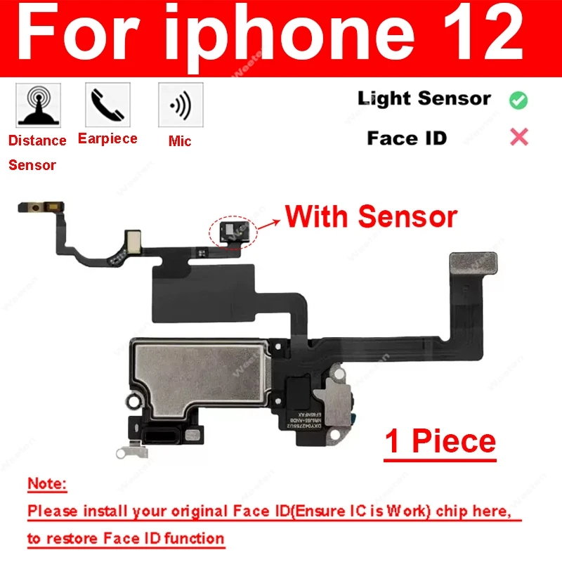 For iPhone X XR XS Max 11 12 Pro Max 12Mini Front Proximity Light Sensor Flex Cable With Earpiece Speaker Light Sensor Flex