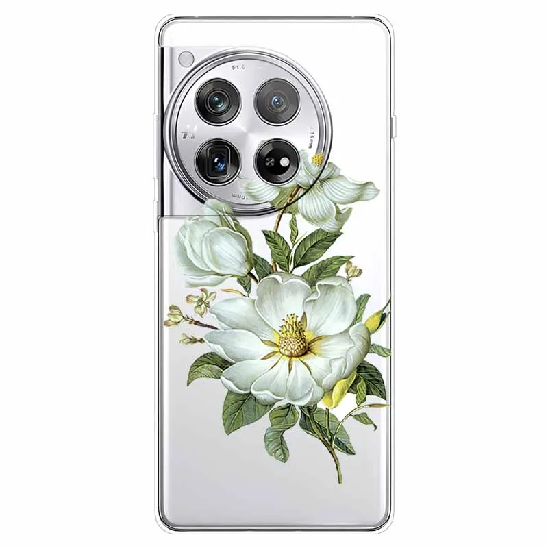 For OnePlus 12 Case Flowers Clear TPU Silicone Soft Phone Cases for One plus 12R Transparent Cover on for Oneplus12 5G Coque bag