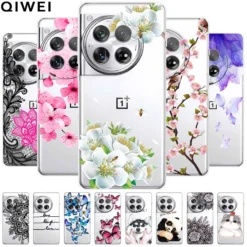 For OnePlus 12 Case Flowers Clear TPU Silicone Soft Phone Cases for One plus 12R Transparent Cover on for Oneplus12 5G Coque bag