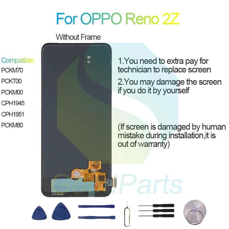 For OPPO Reno 2Z Screen Display Replacement 2400*1080 PCKM70, PCKT00, PCKM00, CPH1945, CPH1951, PCKM80 Reno 2Z LCD Display
