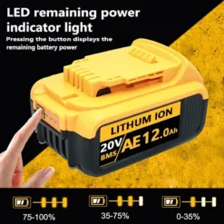 Specifications: Battery Type: Lithium-ion Voltage: 20V/60V Capacity: 6AH/8AH/12AH/18AH optional Discharge Rate: 10C (Powerful) Battery Management System: Built-in BMS Compatibility: Dewalt 20V, 60V, 120V Max Power Tools Features: |Dewalt Battery Dcb606| **Optimized Performance for Dewalt Tools** The Original Dewalt battery, specifically designed for the 20V Max tool series, is a powerhouse of efficiency and reliability. With a robust 20V/60V voltage range, this battery pack is capable of delivering 180 watt-hours of power, ensuring your Dewalt tools run smoothly and effectively. The 10C discharge rate guarantees a powerful performance, making it an ideal choice for demanding tasks. The built-in BMS (Battery Management System) safeguards the battery's health and longevity, while the dual voltage feature provides the flexibility to operate across a range of Dewalt tools. **Durable and Versatile for All Weather Conditions** Constructed with a silicone encapsulated module, this battery is designed to withstand the elements, operating efficiently in outdoor temperatures as low as -20°C. The robust lithium-ion technology ensures a longer lifespan and consistent performance, even in extreme conditions. Whether you're tackling a construction site or working in the backyard, this battery is built to last. It's also equipped with a charging status LED, allowing you to monitor the battery's charge level at a glance. **Effortless Charging and Compatibility** Charging your Dewalt battery is a breeze with the included 21V 3A charger, which rapidly recharges your batteries to full capacity. This charger is compatible with a wide range of Dewalt 20V Max and 60V Max Lithium Ion batteries, including the DCB606, DCB612, and dcb206 models. The rapid charger function, with up to 3A output, provides faster charge cycle times, reducing downtime and increasing productivity. The internal fan cools the battery, ensuring it operates at optimal temperatures, even during extended use.