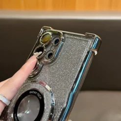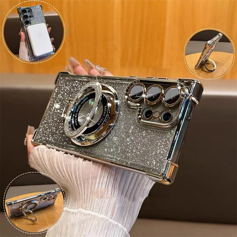 for Magsafe Glitter Bracket Case for Samsung Galaxy S24 Ultra S23 FE S22 Plus Note 20 Stand Holder Gradient Plating Bling Cover