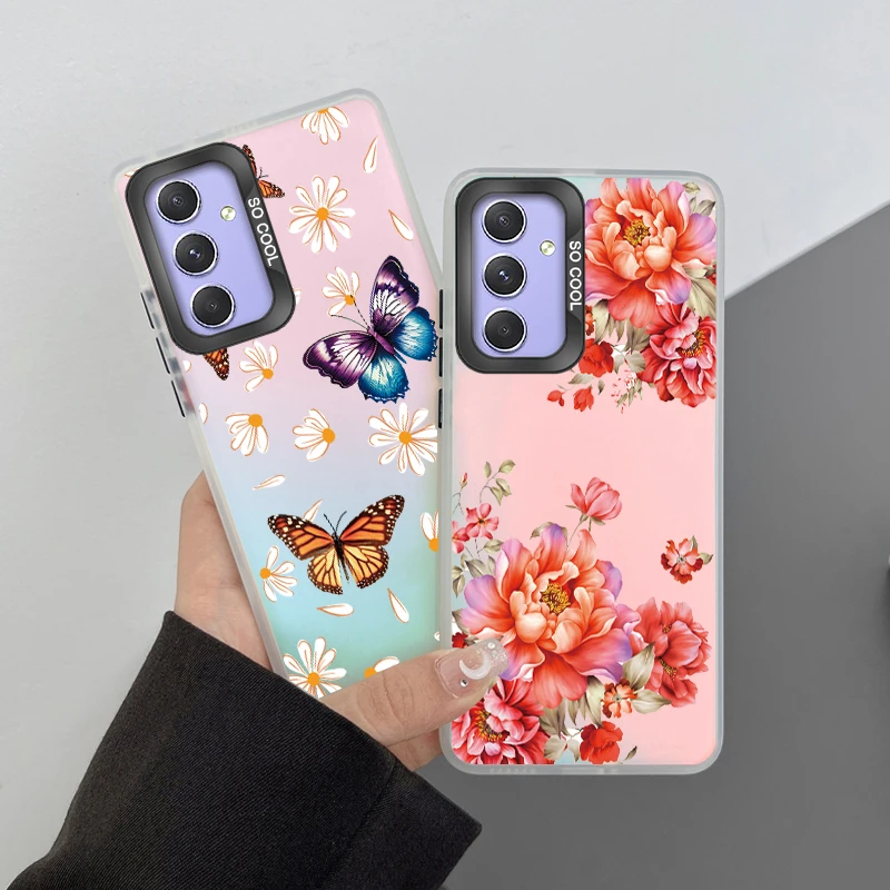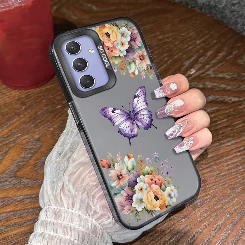 For Samsung Galaxy A54 5G Phone Case Luxury Flower Butterfly Pattern Soft Bumper Hard PC Cover For Samsung A 54 GalaxyA54 Shell