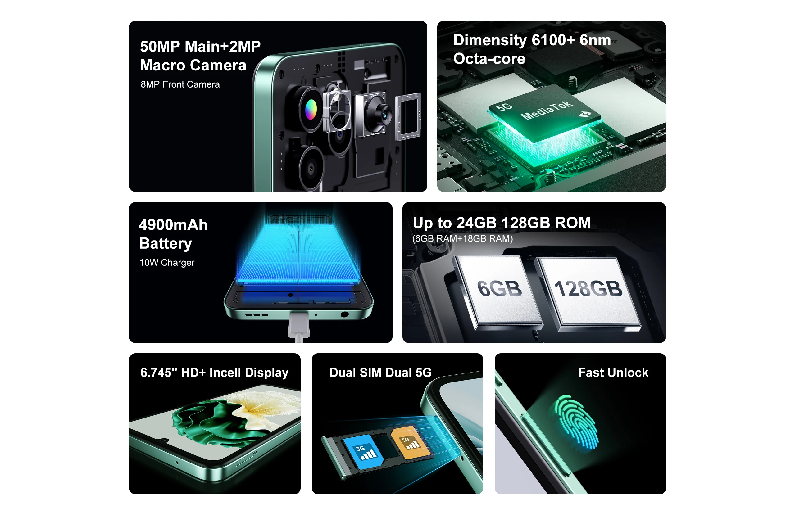 DOOGEE Fire 6 Rugged Phone 6.56″ HD+ 90Hz Display Unisoc T606 Octa Core 16GB+2562GB 10400mAh Battery 50MP AI Camera Android 14