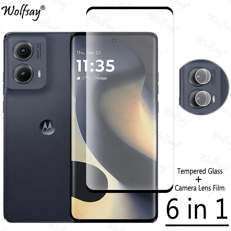Its curved on the edges, like the phone (Moto Edge 2024 5G) and fits the screen perfectly.
