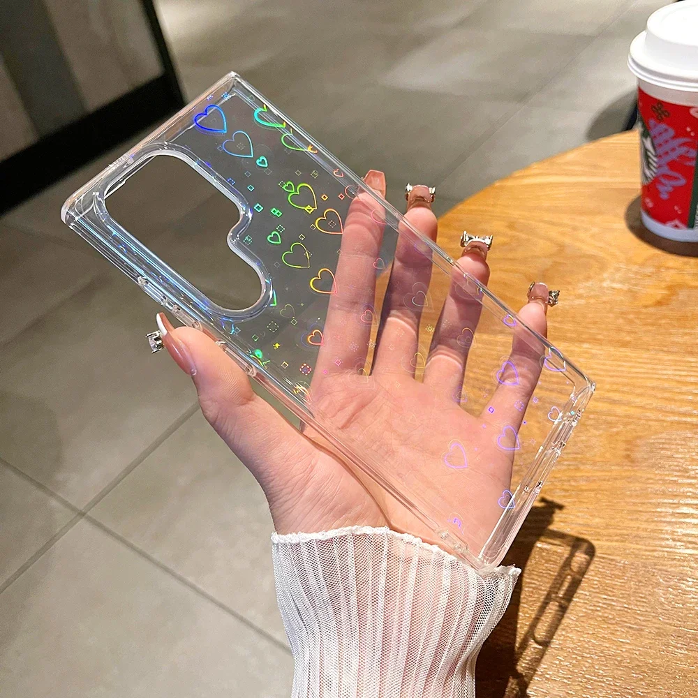 Glitter Laser Love Heart Phone Case for Samsung Galaxy S24 S23 S22 Ultra Plus A55 A35 A15 A54 A34 A14 A24 A53 Transparent Cover –