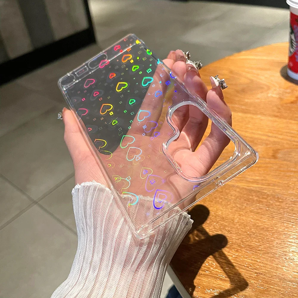 Glitter Laser Love Heart Phone Case for Samsung Galaxy S24 S23 S22 Ultra Plus A55 A35 A15 A54 A34 A14 A24 A53 Transparent Cover –