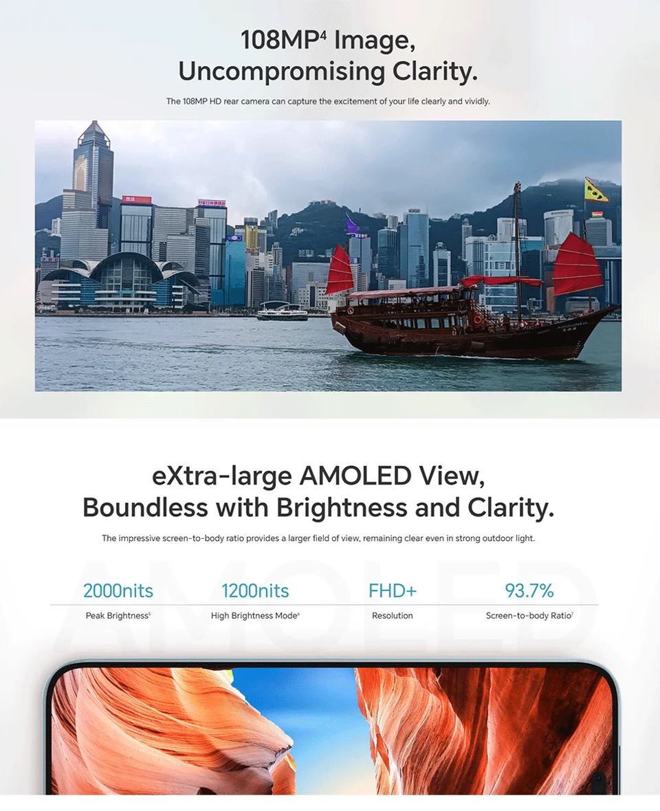 Rear Camera : Triple Rear Camera, 108MP Main Camera+5MP+2MP;