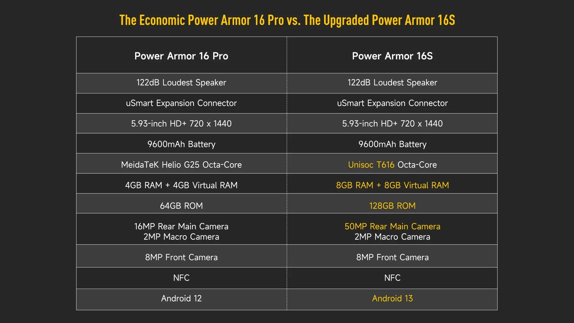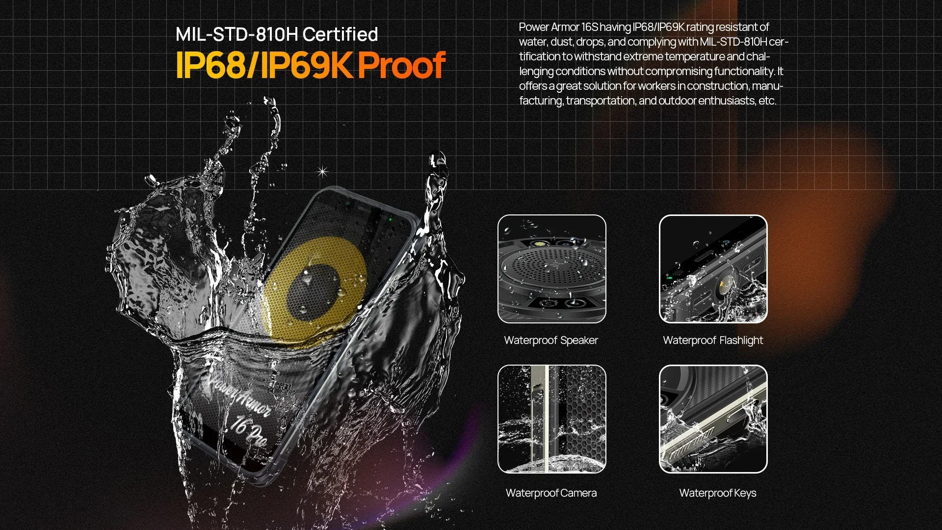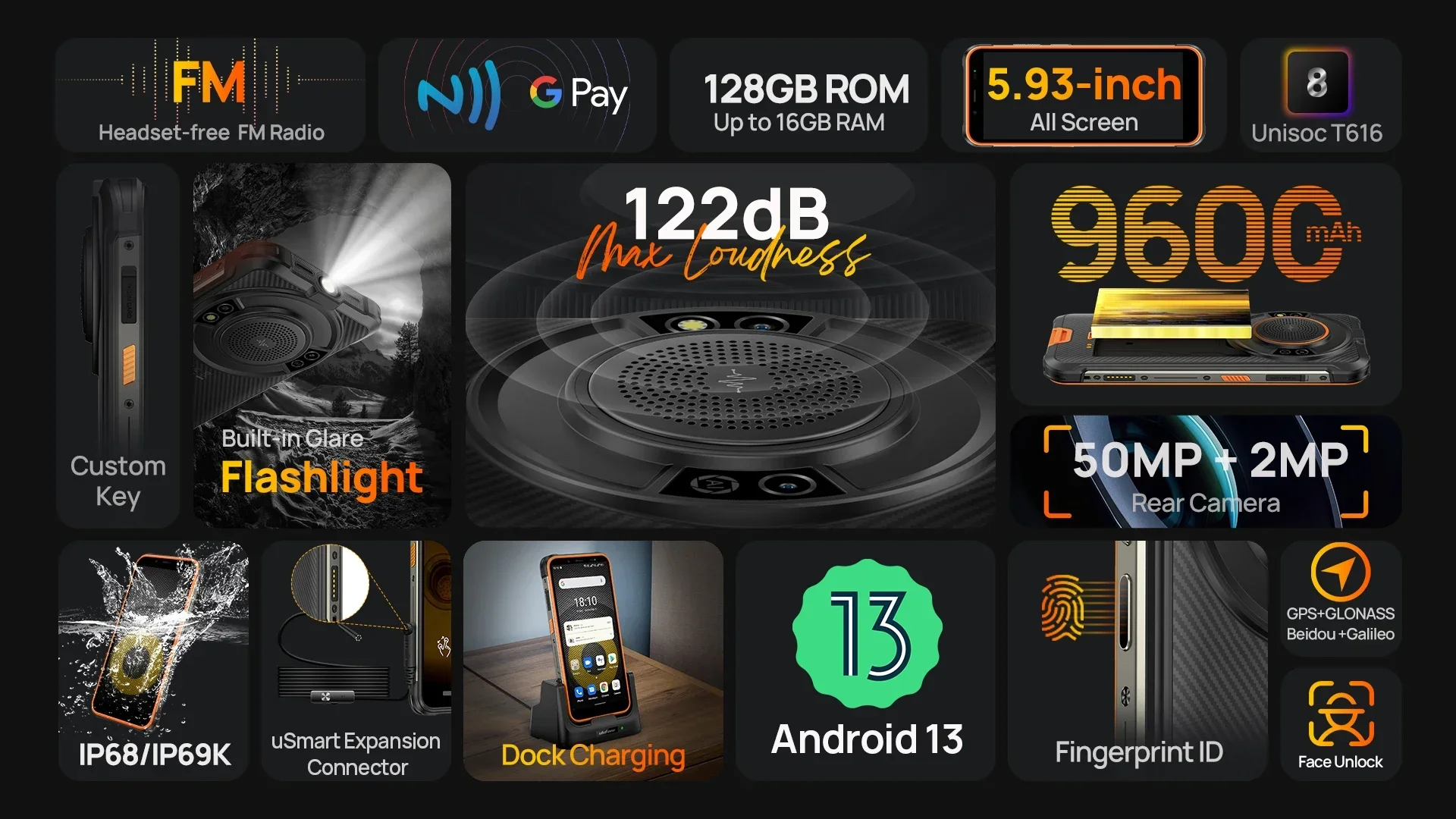 Ulefone Power Armor 16S Rugged 4G Smartphone 5.93Inch HD+ Octa Core 16GB+128GB Android 13 Mobile Phone 50MP 9600mAh Face Unlock