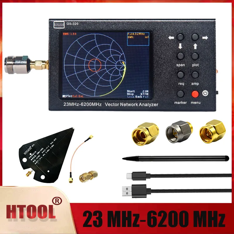 GS-320 Handheld Vector Network Analyzer VNA (Reflectometer) 23-6200 MHz refers to the matching characteristics in measuring passive and active radio equipment (antennas, cables, filters, attenuators, amplifiers, etc.).