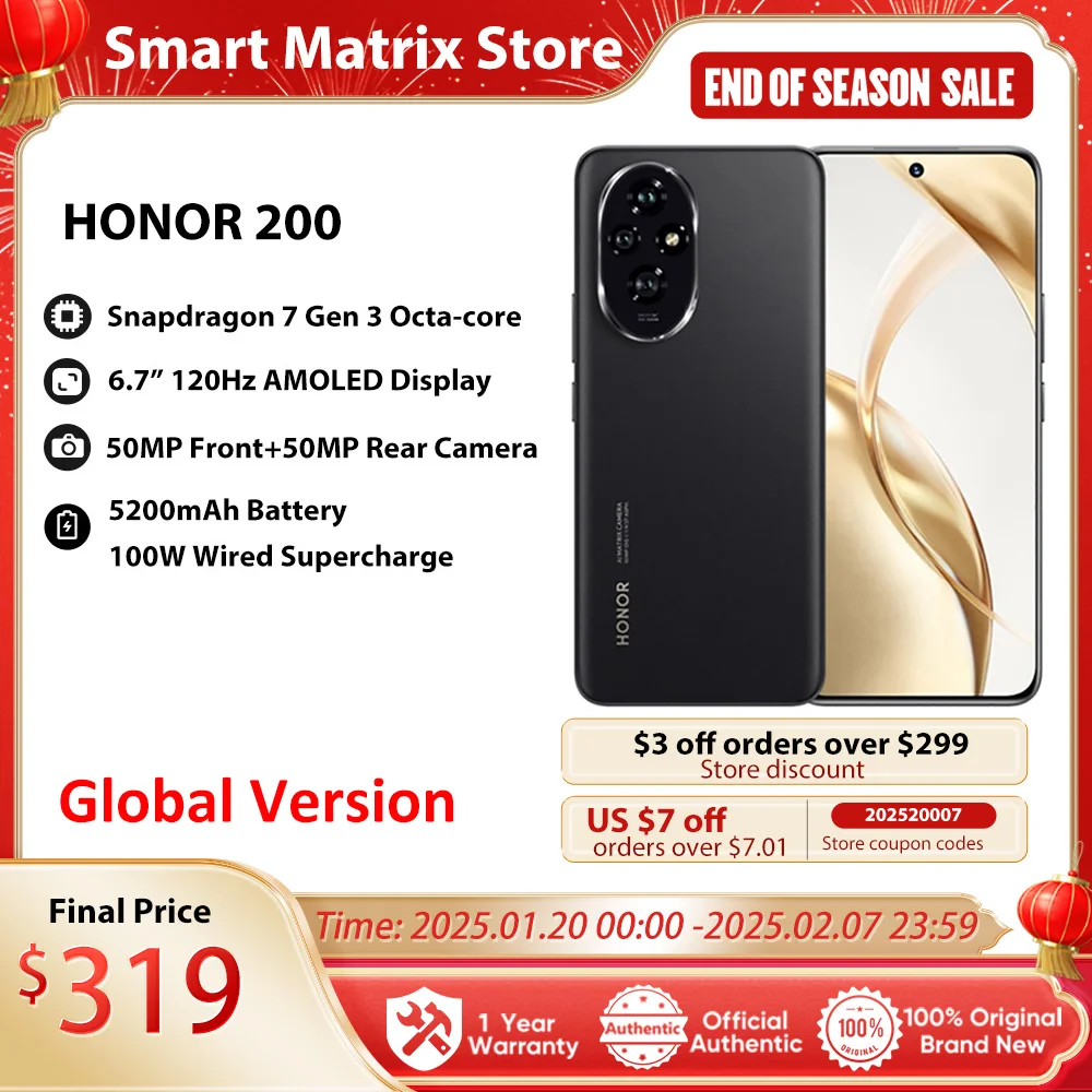 HONOR 200 Global Version 5G Smartphone 6.7” AMOLED Display Snapdragon 7 Gen 3 Support HONOR 100W SuperCharge – 509