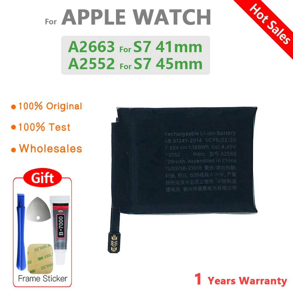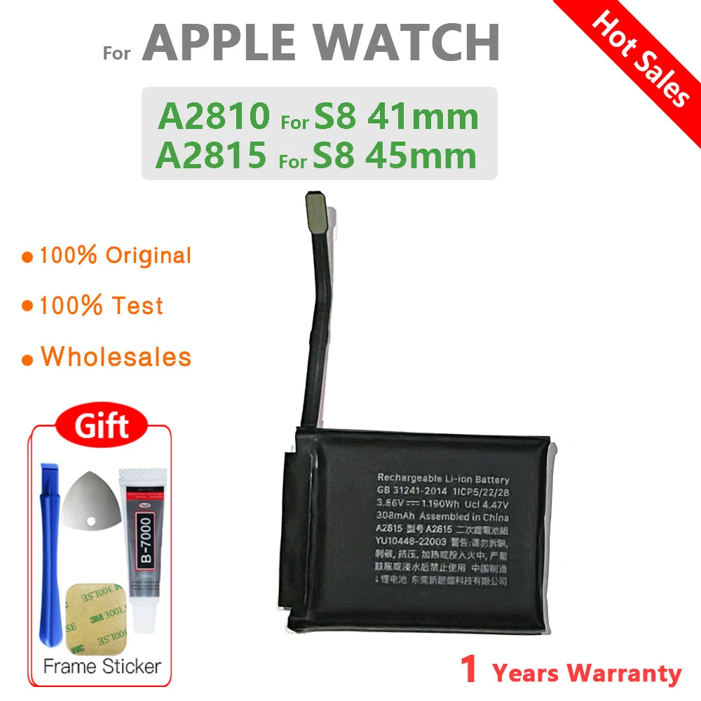 Specifications: Material: High-quality AAA+ battery cells Quality Certifications: ETL, SASO, GS, PSE, FCC, RoHS, KC, MSDS, UL, CSA, CE Compatibility: Apple Watch Series SE, 1, 2, 3, 4, 5, 6, 7, 8 Battery Size Options: 38mm, 40mm, 42mm, 44mm, 41mm, 45mm, 49mm Tool Kit Included: Yes, with frame sticker glue Tracking: Available on the order page Features: |Apple Watch Notes Charging Series 3|Replacing Battery In Apple Keyboard|Battery Apple| **Unmatched Quality and Compatibility** The 100% Genuine Battery for Apple Watch Series is a testament to quality and reliability. Designed to fit a wide range of Apple Watch models, from the SE to the latest Series 8, this battery ensures your device stays powered for longer. Each battery is crafted with high-quality AAA+ cells, offering a reliable and long-lasting performance. With a comprehensive set of quality certifications, including ETL, SASO, GS, PSE, FCC, RoHS, KC, MSDS, UL, CSA, and CE, you can trust that your battery meets the highest safety and performance standards. **Effortless Installation and Tracking** Installing a new battery for your Apple Watch has never been easier. This product comes with a tool kit and frame sticker glue, making the process straightforward and hassle-free. The included tools are designed to assist with the installation, ensuring a secure fit for your device. Additionally, the battery is shipped with a tracking number, allowing you to monitor its journey from the manufacturer to your doorstep. This feature provides peace of mind, knowing that your battery is being handled with care and precision. **Customer Service and Support** Customer satisfaction is paramount, and we are committed to providing an exceptional experience. If you encounter any issues with your battery, our dedicated customer service team is ready to assist. We encourage you to save the unboxing video, as it serves as proof of the product's condition upon arrival. If you find that the product is damaged or the model is incorrect, please contact us promptly with the video and we will resolve the issue swiftly. Remember, your feedback is crucial, and we strive to maintain a five-star rating by addressing any concerns before resorting to disputes. With this battery, you can enjoy a seamless replacement process and a reliable power source for your Apple Watch.
