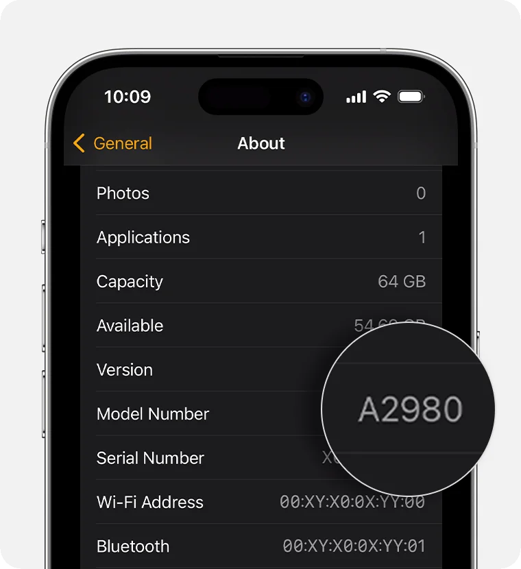 4.Tap the Model field. You should see the field update to show a five-digit number that begins with “A.” This is your model number.