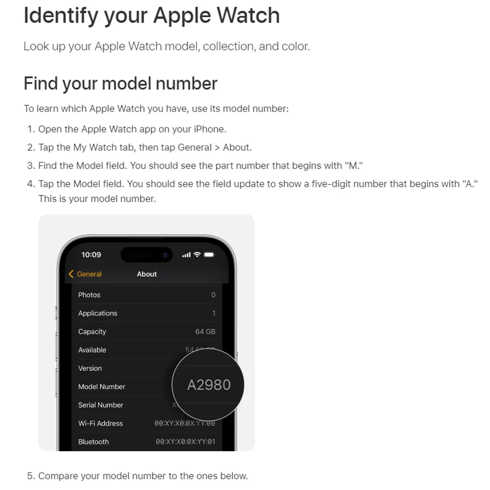 To learn which Apple Watch you have, use its model number: