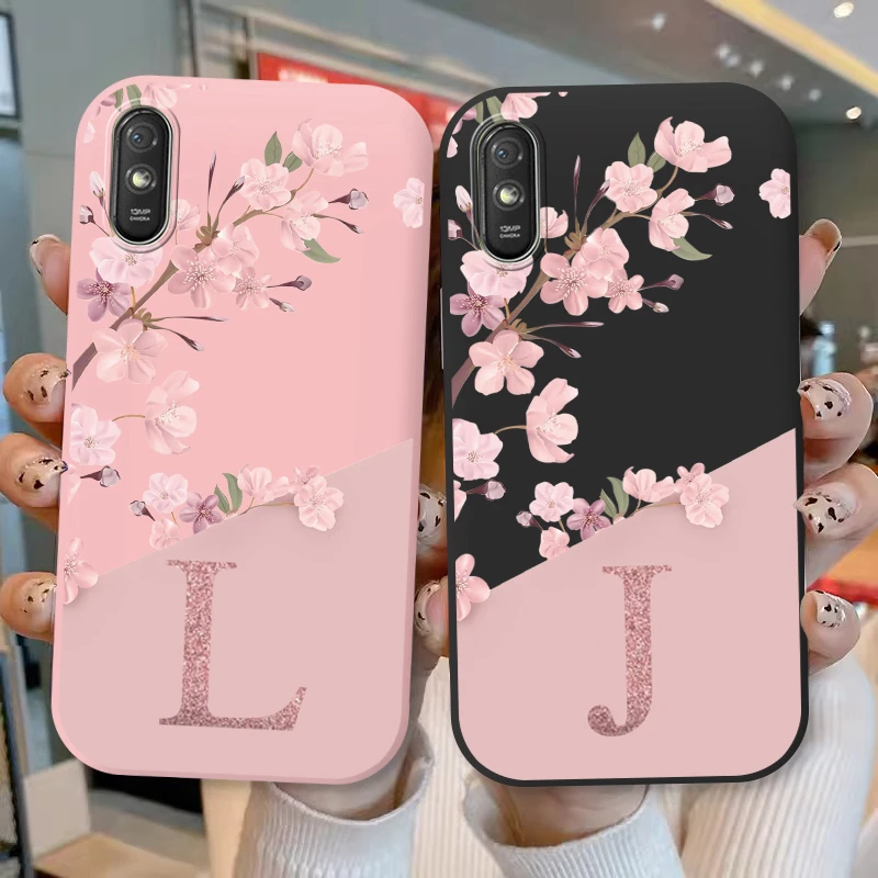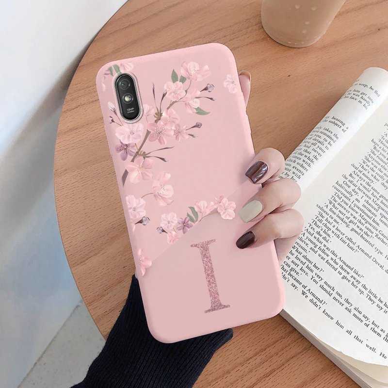 Initial Letter A Z Case For Redmi 9A 9AT Cover Pink Flower Soft Silicone Back Funda For Xiaomi Redmi9A 9 AT Coque Bumper Couple