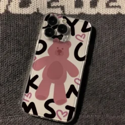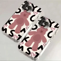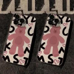 Ins Korean Lovely Pink Bear Phone Case For iPhone 16 Pro Max 15 14 13 12 11 XR XS Max 7 8 Plus Y2K Soft Anti fall Phone Case – 509
