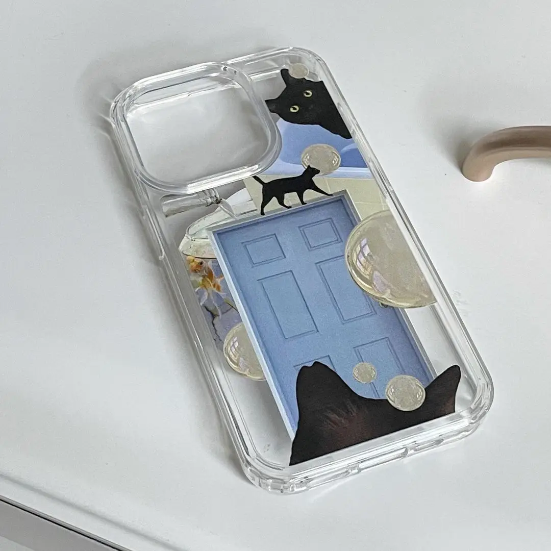 Ins Korea Cute Cat Words Transparent Phone Case For iPhone 16 15 14 13 12 11 Pro Max XR XS Max 7 8 Plus MINI Y2K Cute Case Cover