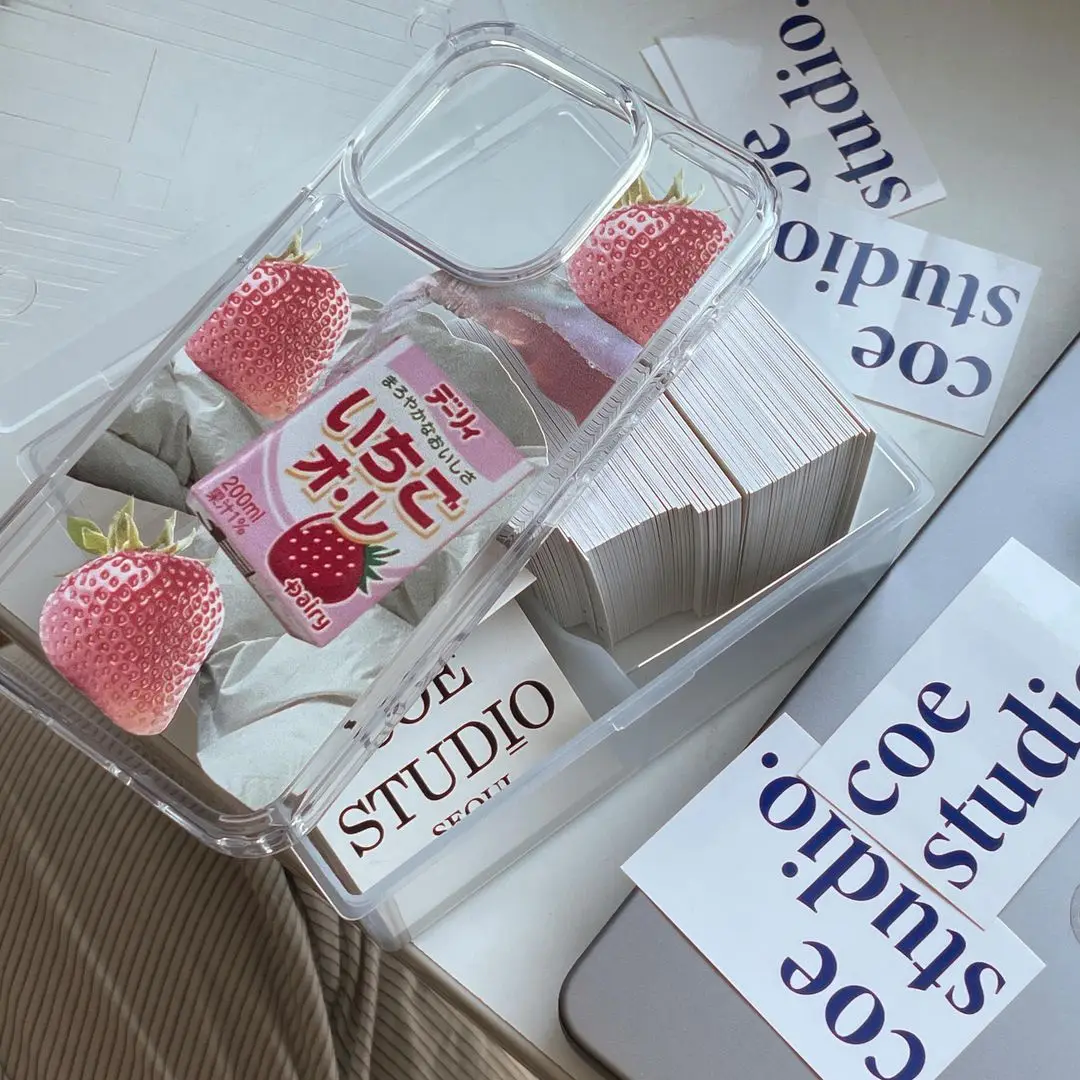 Korean Style Strawberry Mobile Phone Case For iPhone 16 15 14 13 12 11 Pro Max XR XS Max 7 8 Plus MINI Y2K Cartoon Cute Cover