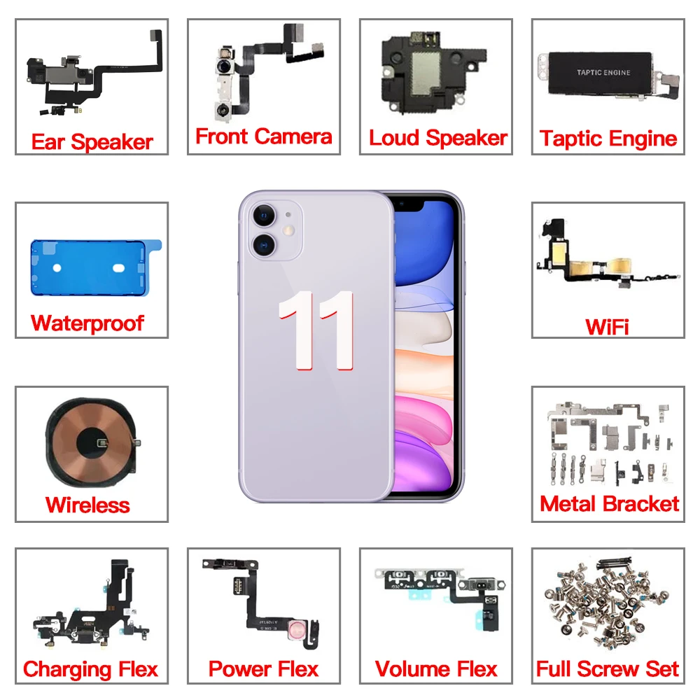 Internal Parts Replacement for iPhone 11 Front Camera Power Volume Button Ear Speaker Flex Cable Bracket Screws Taptic Engine