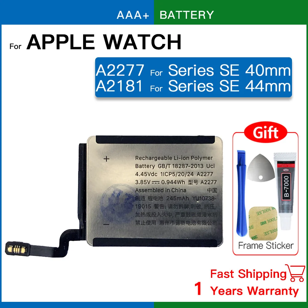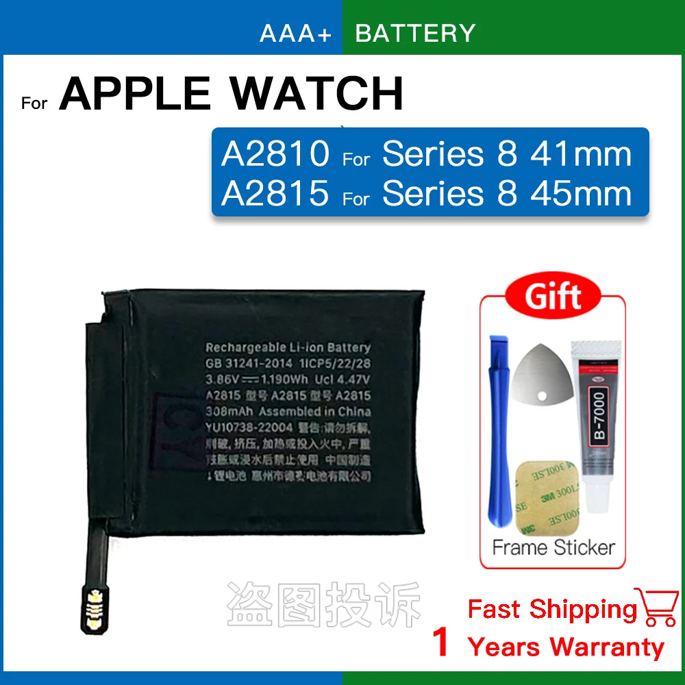 Specifications: Quality Certification: Multiple certifications including CE, CSA, MSDS, and RoHS Compatibility: Designed for a wide range of Apple Watch models from Series SE to Series 9 Battery Capacity: Available in 38mm, 40mm, 41mm, 42mm, 44mm, 45mm sizes to fit various Apple Watch models Quality: High-quality AAA+ battery with a valid tracking number for peace of mind Tools Included: Comes with tools as a gift, ensuring you have everything you need for a smooth replacement process Aftersales Support: Comprehensive aftersales service with unboxing video recording and professional guidance Features: |Apple Iphone Replacement Battery Cost|Apple Laptop Battery|Check Apple Watch Battery On Iphone| **Reliable Performance and Compatibility** The New Original Battery for Apple Watch is a premium replacement option for those looking to restore their device's performance. With a variety of sizes available, including 38mm, 40mm, 41mm, 42mm, 44mm, and 45mm, this battery is compatible with a wide range of Apple Watch models, from the Series SE to the Series 9. Each battery is crafted with high-quality materials and is backed by multiple quality certifications, including CE, CSA, MSDS, and RoHS, ensuring that it meets the highest standards of safety and reliability. **Ease of Installation and Aftersales Support** The package includes a battery, tools, and a frame sticker glue, making it a complete kit for a hassle-free replacement process. The tools are provided as a gift, but if you already have suitable tools, they can be used as emergency spare parts. The unboxing video is crucial for aftersales support, as it allows us to verify the condition of the product and address any issues promptly. Our aftersales service is designed to be user-friendly, with guidance provided by professional maintenance personnel to ensure a smooth installation process. **Peace of Mind with Tracking and Warranty** Each battery comes with a valid tracking number, allowing you to monitor the progress of your order and ensuring that your package is delivered safely. The high-quality AAA+ battery is backed by a warranty, giving you peace of mind that your investment is protected. The inclusion of tools and the comprehensive aftersales support make this battery an excellent choice for anyone looking to replace their Apple Watch battery. Remember to save the unboxing video and contact us promptly if you encounter any issues, and we will be happy to assist you.