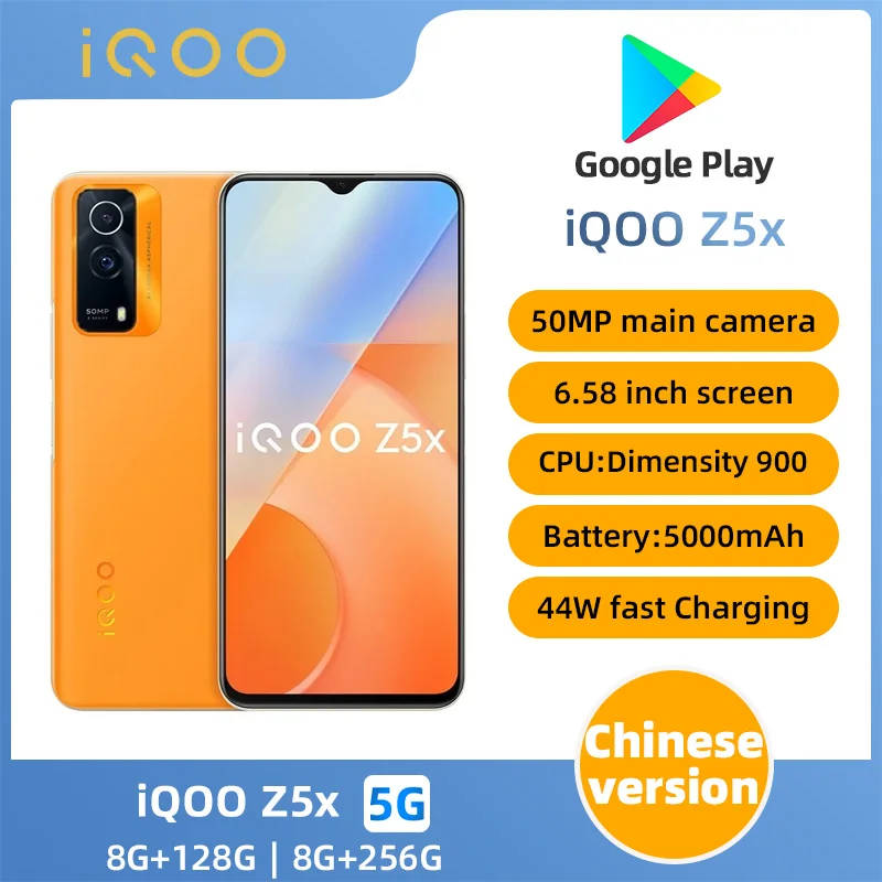 iQOO Z5x 5G SmartPhone CPU MediaTek Dimensity 900 Battery capacity 5000mAh 50MP Camera original used phone