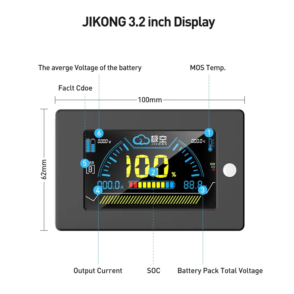 JK BMS LCD Display 2.0 Inch 3.2 Inch 4.3 Inch Displayer For JIKONG Smart BMS Voltage Current SOC Temperature Indicator