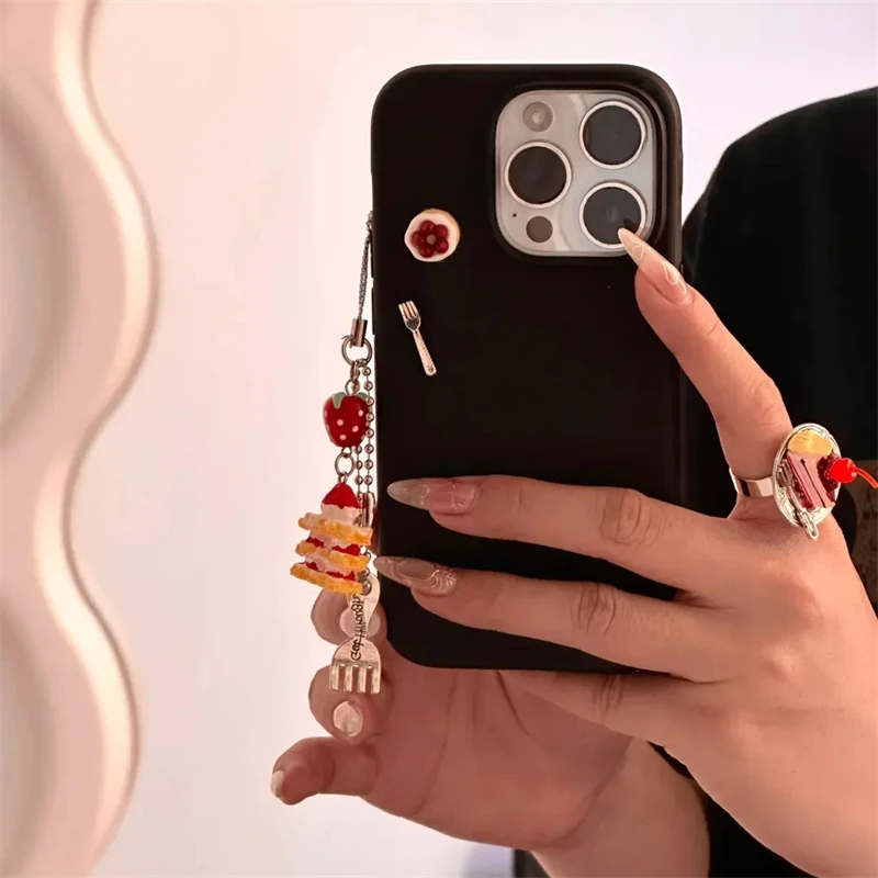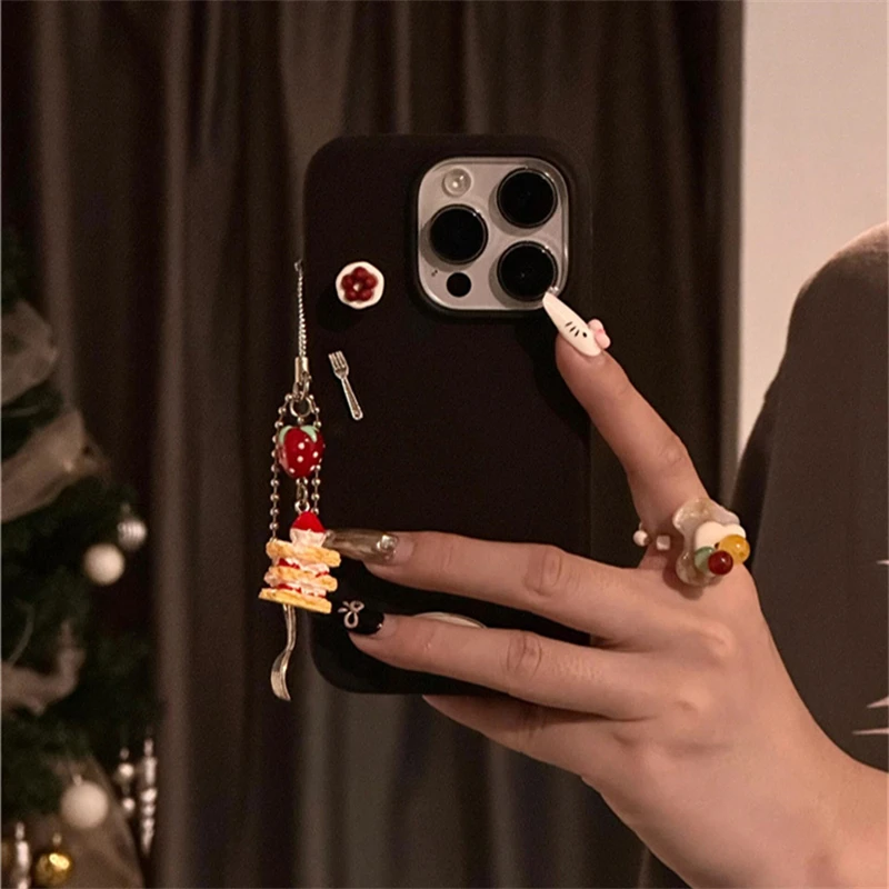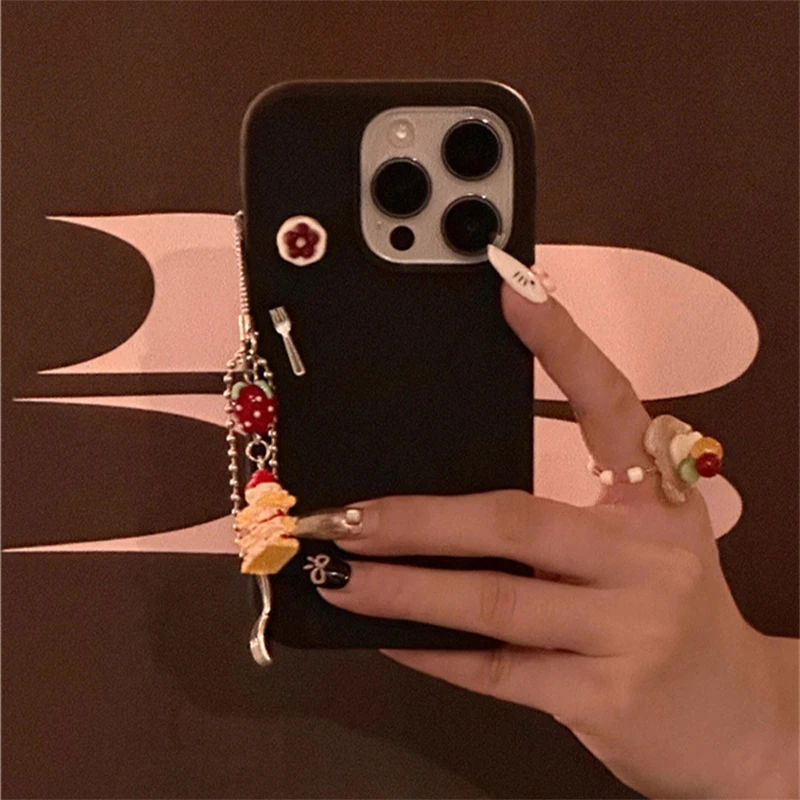 Korean Cute 3D Cake Pendant Soild Color Phone Case Compatible With iPhone 16 15 13 14 12 11 Pro Max Shockproof Soft Back Cover G –