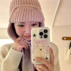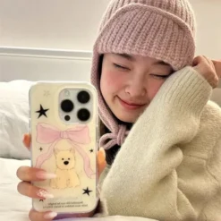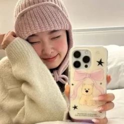 Korean Cute Ribbon Bow Cartoon Puppy Phone Case For iPhone 16 15 14 13 12 11Pro XR XS Max 7 8 Plus Y2KGraffiti Phone Soft Cover – 509