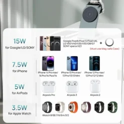 After being frustrated with other MagSafe chargers that hyped their innovative design,I wanted a 3 in 1 charger that could be easy to use, and powerful enough to charge my iPhone, Apple watch, and Airpods each night,and this is exactly what I got.