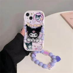 Kuromi Hello Kitty Bracket Bracelet Phone Case For OPPO A60 A17 A36 A52 A53 A32 A11S A15 A35 A16 A16S A31 A5 A9 2020 A3S A5S A12E A54 A55 A57 F9 F11 F19 F17 Pro Reno 6 Lite Soft TPU Sanrio Cartoon Wavy Cover