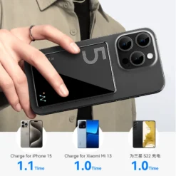 The glass coating is actually plastic, and therefore scratches well. Otherwise very good. Supports fast charging.