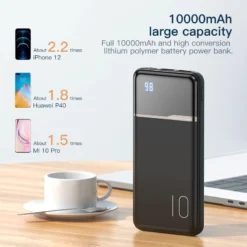 Full 10000mAh and high conversion lithium polymer battery power bank.