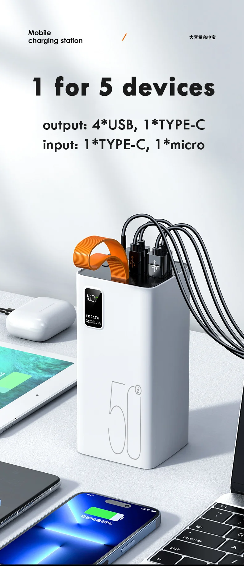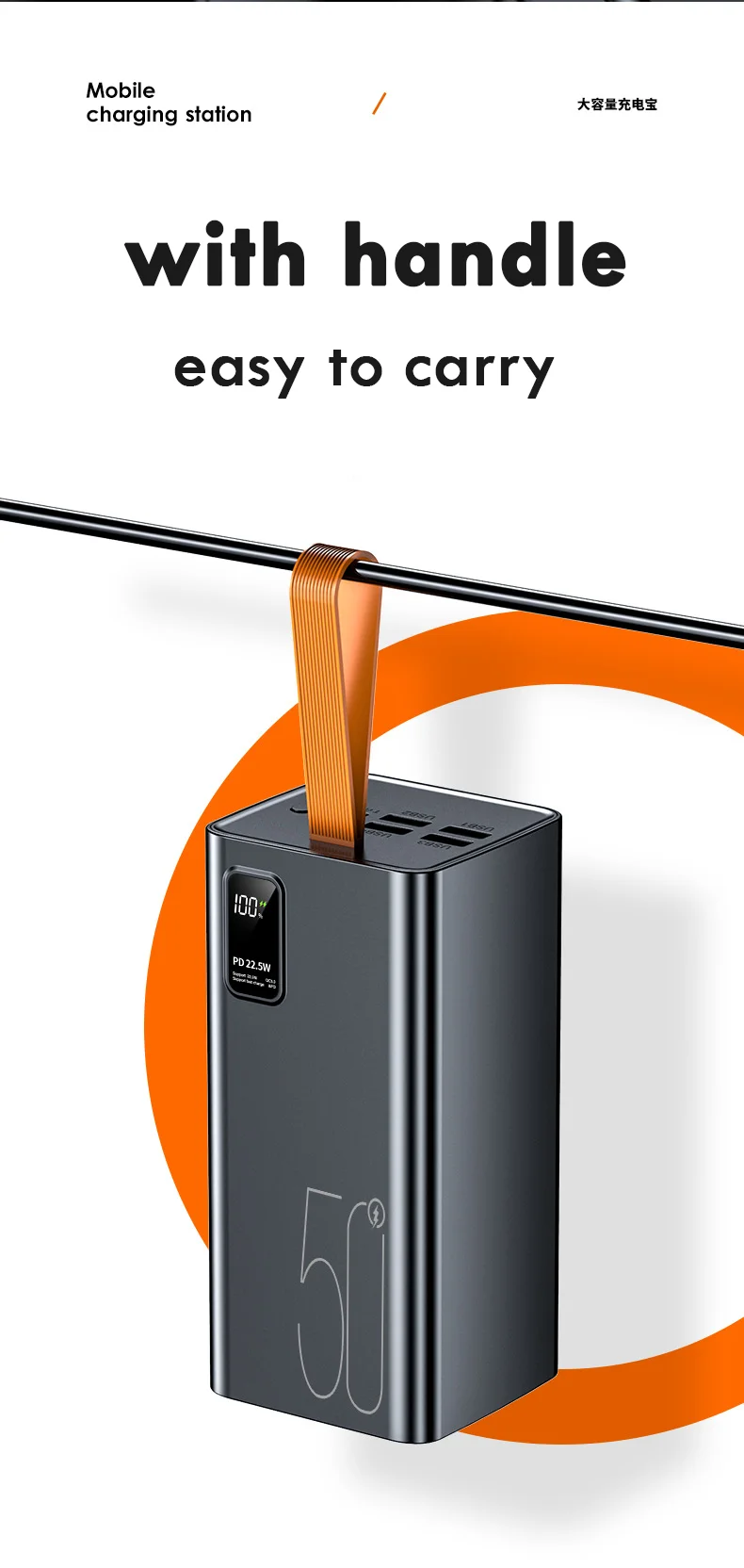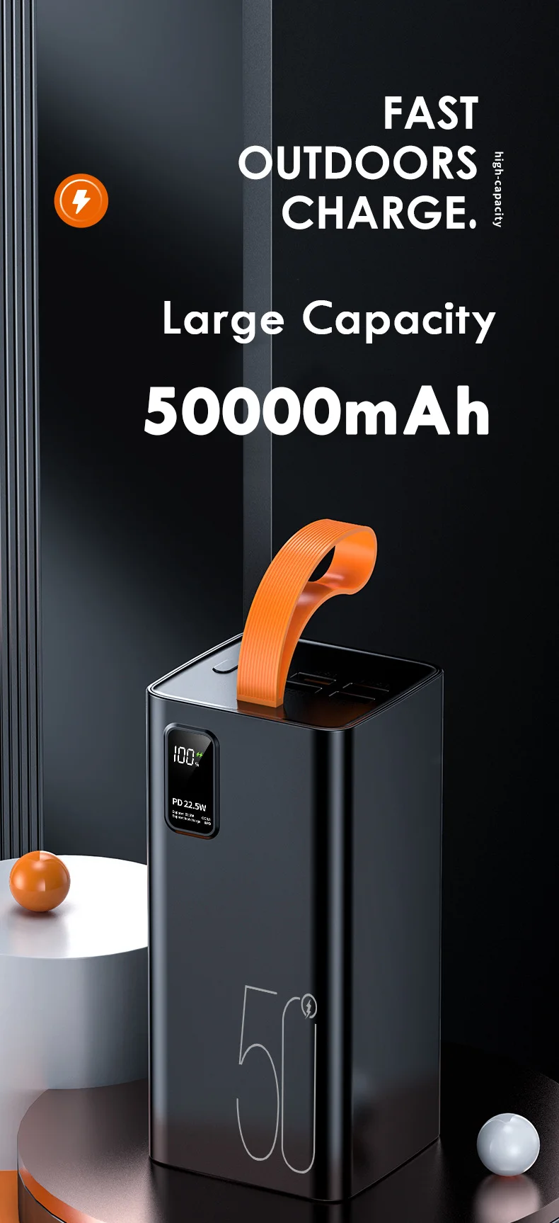 Large Capacity 50000mAh Power Bank Portable PD20W 22.5W USB C Fast Charging External Spare Battery For iPhone Xiaomi Samsung