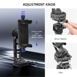 Enhance your phone photography with our versatile 360° Metal Phone Tripod Mount! Featuring 2 cold shoes and an Arca Port, it supports vertical and horizontal rotation for the perfect angle. With compatibility for various phone models, take on any photography adventure with ease and precision.