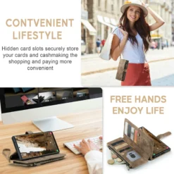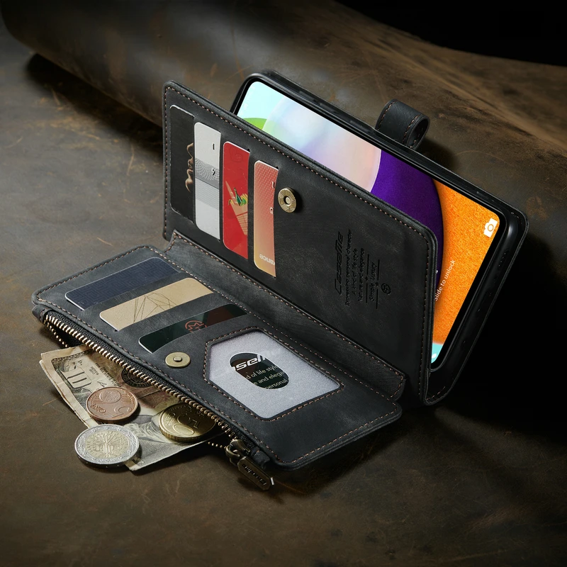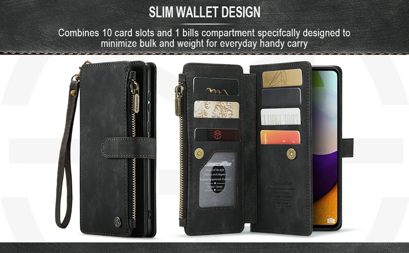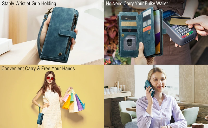 Feature : Featuring multiple slots for cards and cash, carry around your ID credit, debit cards, cash, and more. Zipper closure ensures all your important items securely stay inside.it does not interfere with Apple Pay.